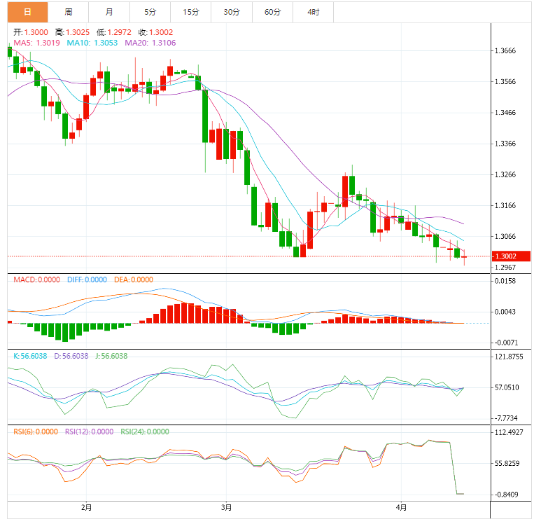 3、若汇价明确突破4 月7 日高点1.3106,英镑多头将占主导。这将推动英镑/美元上涨接近4 月4 日高点1.3137。若英镑突破该水平,将接近阻力位1.3200。