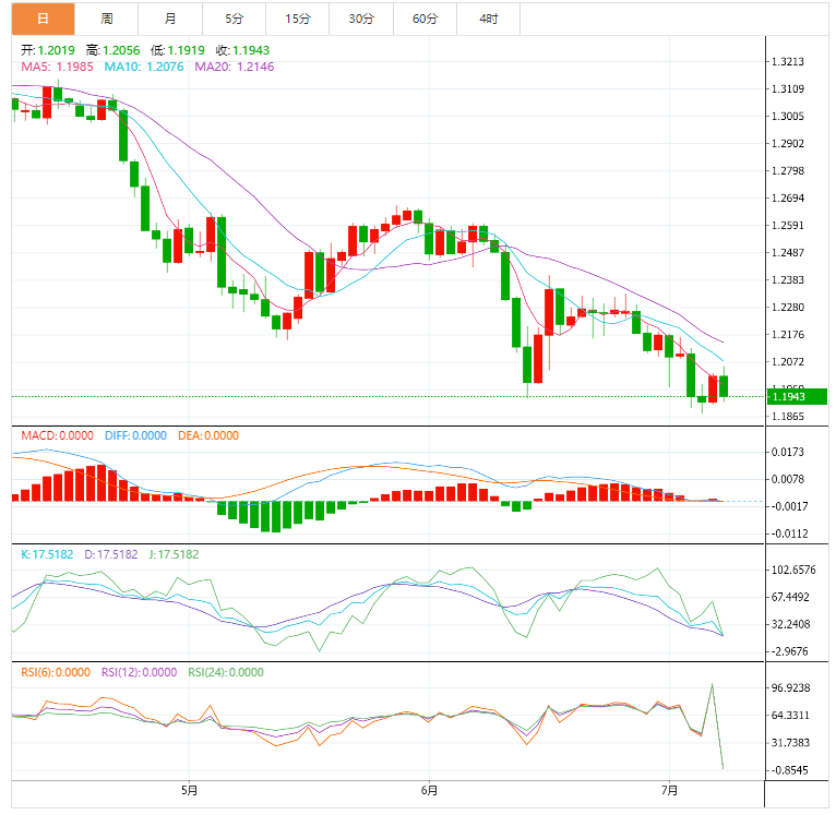 支撑位:1.1945 1.1867 1.1824