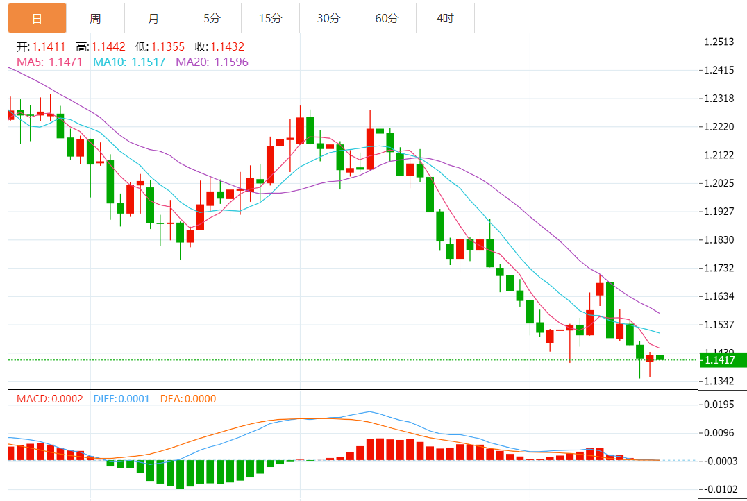 技术上,从日线图来看,英镑兑美元仍偏向下行。该指数日内跌破1.1400点,但没有创下37年新低,而是重新回到了1.1400点。