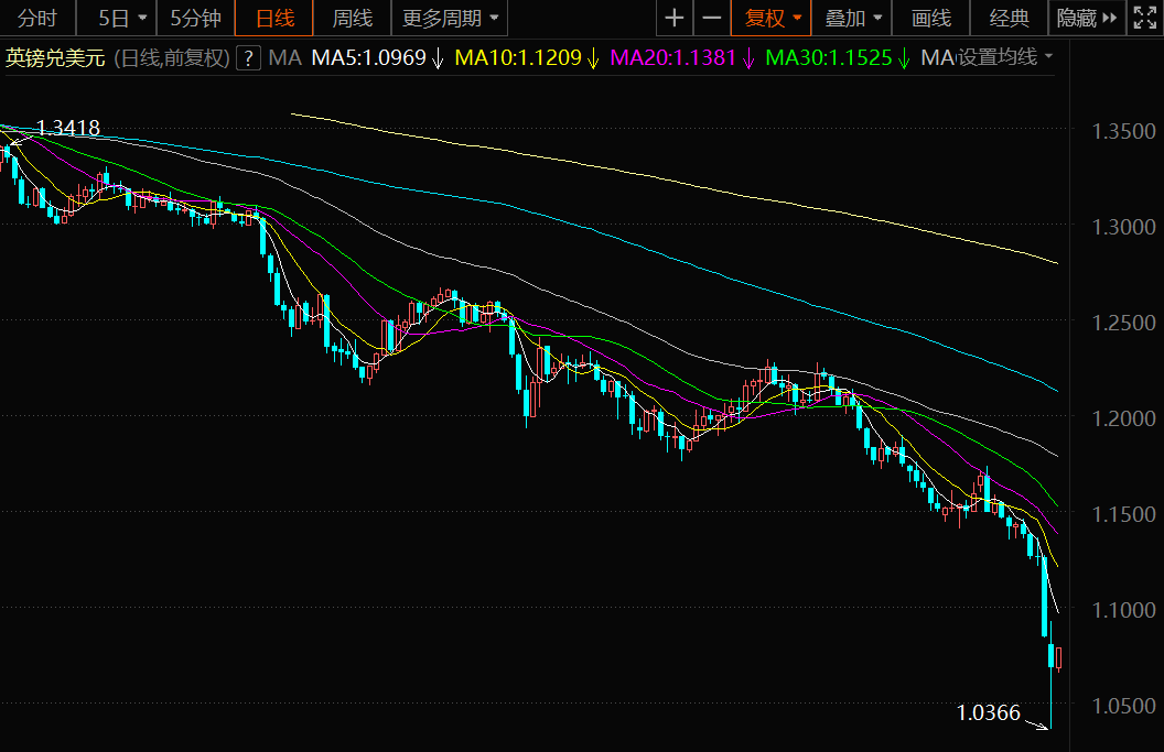 由于英国金边债券再次遭到抛售以及市场维持担忧央行上调利率政策继续给全球金融体系带来压力,英镑/美元创下历史新低。