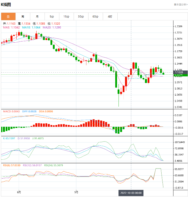 行情分析:汇价高见1.1240,低见1.1171。上一交易日,汇价收于1.1218。基本面上看,美元在短暂整理后重新走高,使得多个非美向下破位。黄金跌破1640最低下探1626.36,延续1730高点以来的下行走势。英镑在1.1350一线破败下行跌超150点,测试1.1200关口,因英国通胀高涨引发市场对英国经济深度衰退的担忧。技术面上看,小时图震荡走低在1.1200一线徘徊,需要下破该档打开进一步下行空间。4小时图跌破MA20扭转下行,空头仍占主导。日图在MA50受阻收录黄昏之星,随机指标受下降趋势线打压,若下破MA20将有望进一步扩大跌幅。