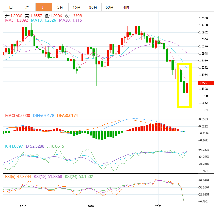 10月英镑“起死回生”,在连续2个月下跌之后,英镑受到了英国新任首相苏纳克上任的刺激大幅反弹。目前汇价1.1572(截止目前),10月已经上涨409点,10月26日触及最高点1.1638。