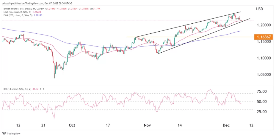 过去几周英镑兑美元汇率一直处于强劲的看涨趋势。在此过程中,该货币对已经突破了50日移动均线,而相对强度指数(RSI)则跌破了中性水平。它还形成了一个上升的楔形模式,这通常是一个看跌信号。