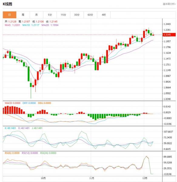 交易策略:日内建议在1.2150下方轻仓做空,止损1.2200,下破1.2120跟进。