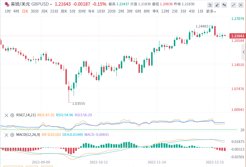 英镑昨日震荡上行,日线小幅收涨,现汇价交投于1.2180附近。除空头回补对汇价构成了一定的支撑外,美元指数在美联储放缓加息步伐预期和日元暴涨的打压下走软是支撑英镑反弹的主要原因。不过,对英国经济衰退的担忧情绪限制了汇价的反弹空间。今日关注1.2250附近的压力情况,下方支撑在1.2100附近。