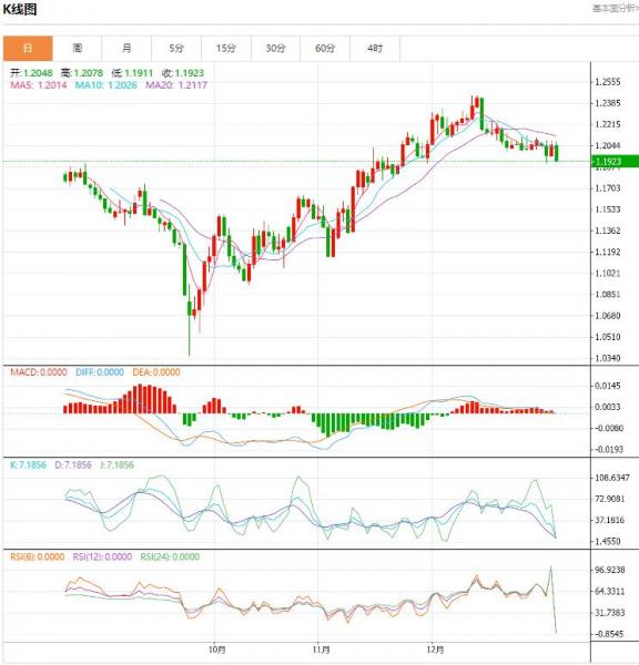 周四盘中,截止目前,英镑/美元货币对1.1925/1.1923,下降至0.0127,跌幅1.06%。对英国央行降息的猜测或冲击英镑。