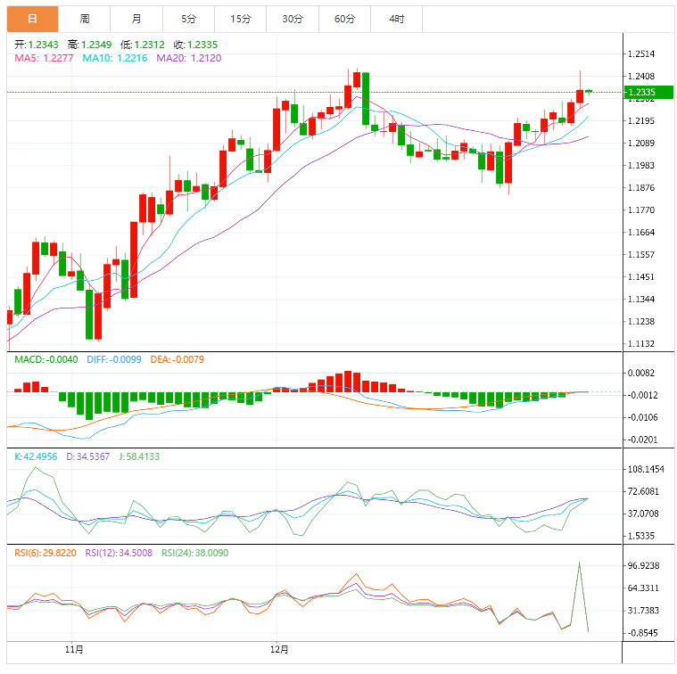 英镑技术面:英镑兑美元昨天强劲反弹,距离我们扩大的目标位1.2440只有几个pip的距离,并在那里发现了坚实的阻力,显示出一些看空偏见,并朝着图表上出现的日内看涨通道支撑线的潜在测试前进,等待恢复看涨波,其目标通过超过上述水平向1.2590前进,作为下一个积极位置。因此,除非突破1.2250并保持在该水平以下,否则将继续建议在接下来的一段时间内看涨。