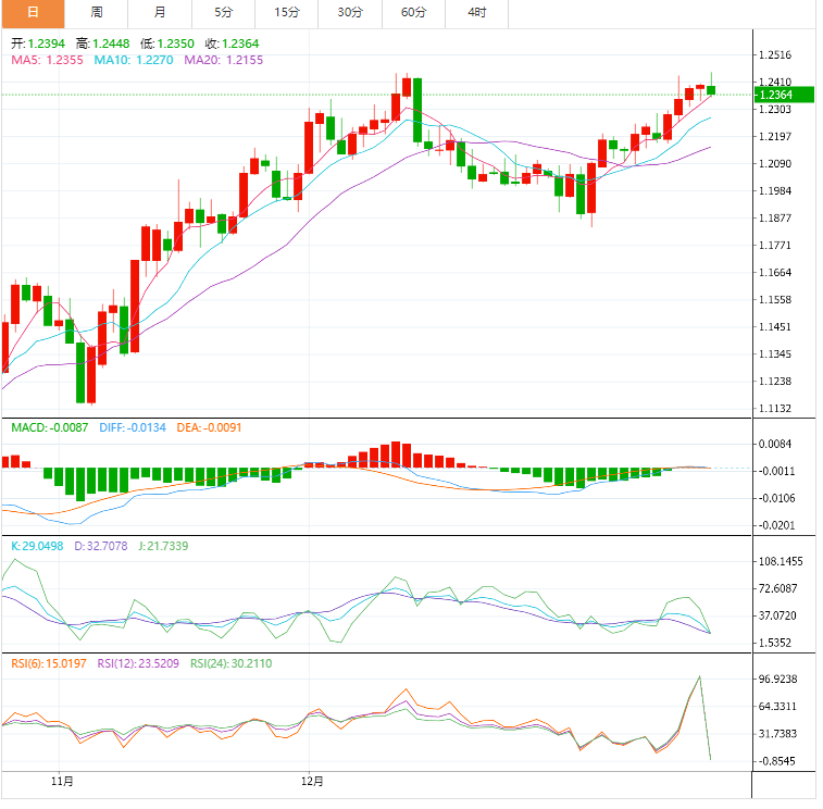 英镑技术面:英镑兑美元成功触及了等待的目标位1.2440,并试图突破该目标位,这表明看涨通道内有更多的积极目标位达到1.2590,看涨波将继续延伸。因此,看涨趋势在接下来的一段时间内仍然有效,注意突破1.2340将停止预期的上涨,并推动价格实现新的看空修正。