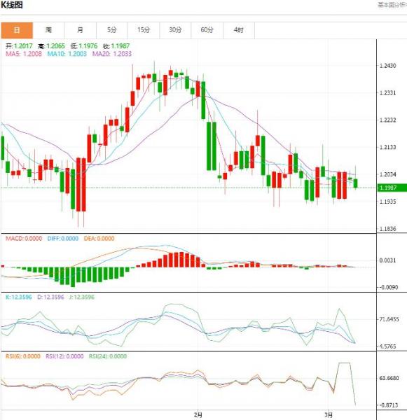 行情分析:汇价高见1.2065,低见1.1976。上一交易日,汇价收于1.2017。基本面上看,英镑昨日震荡盘整,日线微幅收跌,除获利回吐对汇价构成了一定的打压外,英国央行行长日前发表的鸽派言论影响发酵,英国央行3月份的加息预期降温也是施压英镑回落的重要因素。不过,美元指数在多重利空因素的联合打压下走软限制了汇价的下跌空间。技术上,小时图陷入整理,初步阻力1.2050,初步支持1.1990。4小时图在1.2050下方子啊福波动,缺乏动能。日图在2月区间1.1914-1.2180内窄幅波动,仍缺乏方向。