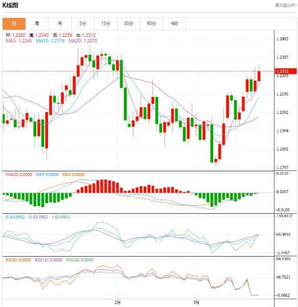 英镑小幅上涨,在欧洲时段交易于 1.2296,上涨 0.25%。早些时候,英镑/美元一度攀升至1.2343,为2月2日以来的最高水平。
