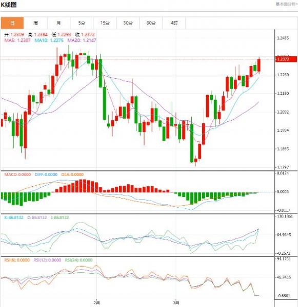 欧洲时段,英镑/美元报1.2346,上涨0.23%。英镑有望连续第四周上涨,3 月份已上涨 2.69%。