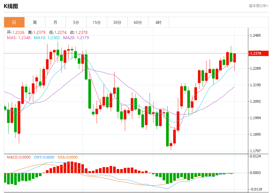 周一欧市盘中,英镑兑美元交投于1.2380,涨幅为0.40%。