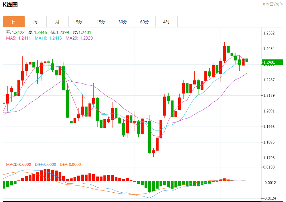 周三欧市盘中,英镑兑美元交投于1.2401,跌幅为0.17%。