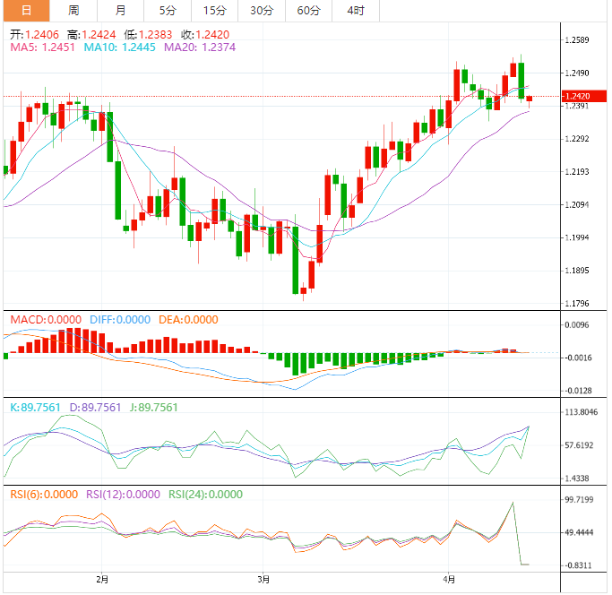 英镑基本面:英镑/美元跌破1.2400整数关口支撑后,出现一些做多情绪。英镑/美元出现一些反弹,然而,由于美元指数的上行形态仍没有被削弱,採取观望似乎更为可行。英国就业数据(3月)公佈之前,英镑预计将维持波动。三个月失业率可能会保持在3.7%。失业金申领人数预计将减少1.18万,高于前值1.12万。进入劳动力市场的求职者不断增加表明劳动力市场状况紧张。