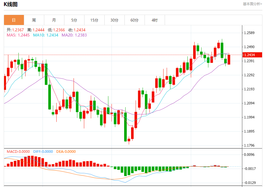 周二欧市盘中,英镑兑美元交投于1.2436,涨幅为0.48%。