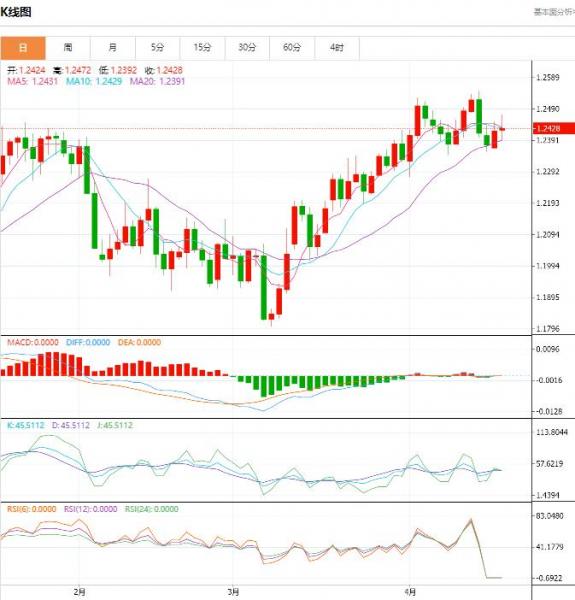 行情分析:汇价高见1.2472,低见1.2392。上一交易日,汇价收于1.2420。基本面上看,英镑昨日震荡上行,日线小幅收涨。除空头回补对汇价构成了一定的支撑外,美元指数在风险情绪转暖和美债收益率下滑等因素的打压下走软也是支撑英镑反弹的重要因素。此外,英国央行的加息预期和在本周英国通胀数据公布前投资者保持警惕也对汇价构成了一定的支撑。技术上,小时图在1.2350上方企稳反弹,但在前期高点1.2450附近受阻,略看空。4小时图小幅反弹缺乏动能,仍偏弱势。日图自3月8日低点以来的反弹势头维持完好,短线测试MA20,倾向下行。