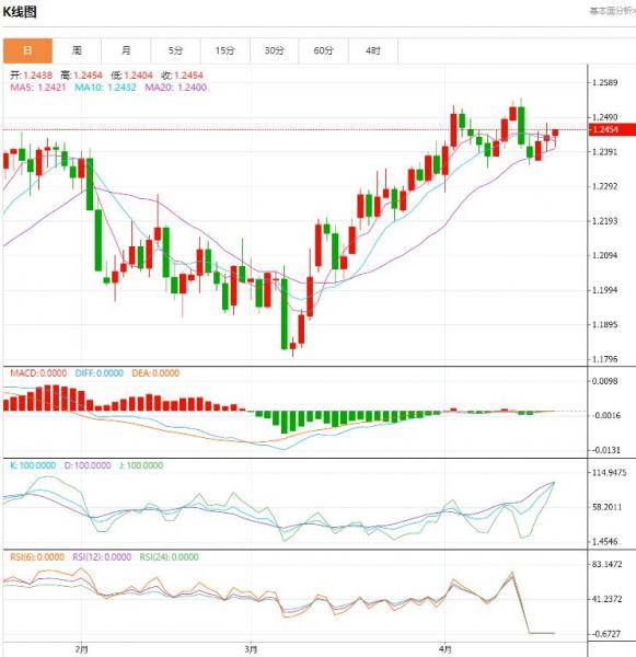 行情分析:汇价高见1.2460,低见1.2404。上一交易日,汇价收于1.2439。基本面上看,英镑昨日震荡上行,日线小幅收涨。除1.2400关口附近所形成的技术面买盘对汇价构成了一定的支撑外,时段内英国公布的一系列经济数据表现良好,特别是强劲的通胀数据升温英国央行下月加息的预期是支撑汇价走高的主要原因。不过,美元指数在多重利好因素的支撑下走高限制了汇价的上升空间。技术上,小时图两次上探1.2475一线有受阻迹象,但回调动能不强。4小时图小幅反弹缺乏动能,暂时看整理。日图自3月8日低点以来的反弹势头维持完好,短线测试MA20,关注能否企稳。