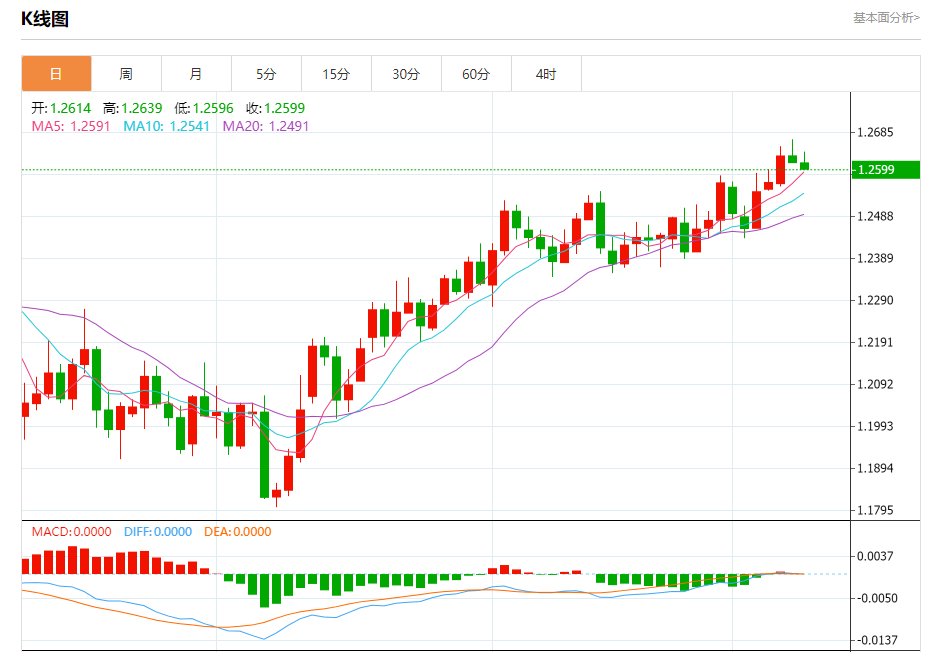 周二欧市盘中,英镑兑美元交投于1.2600,跌幅为0.12%。
