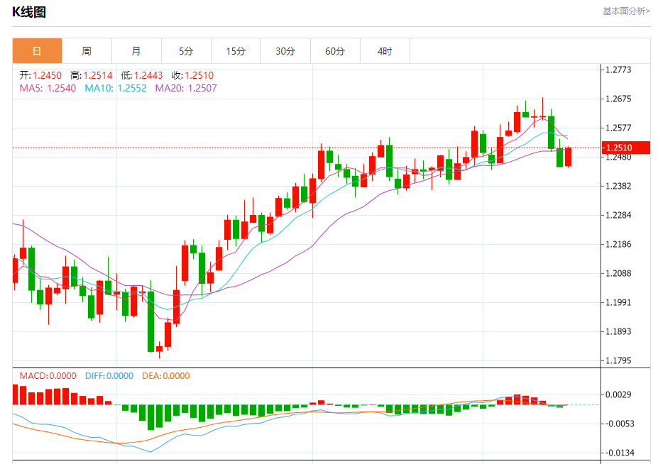 周一欧市盘中,英镑兑美元交投于1.2512,涨幅为0.51%。