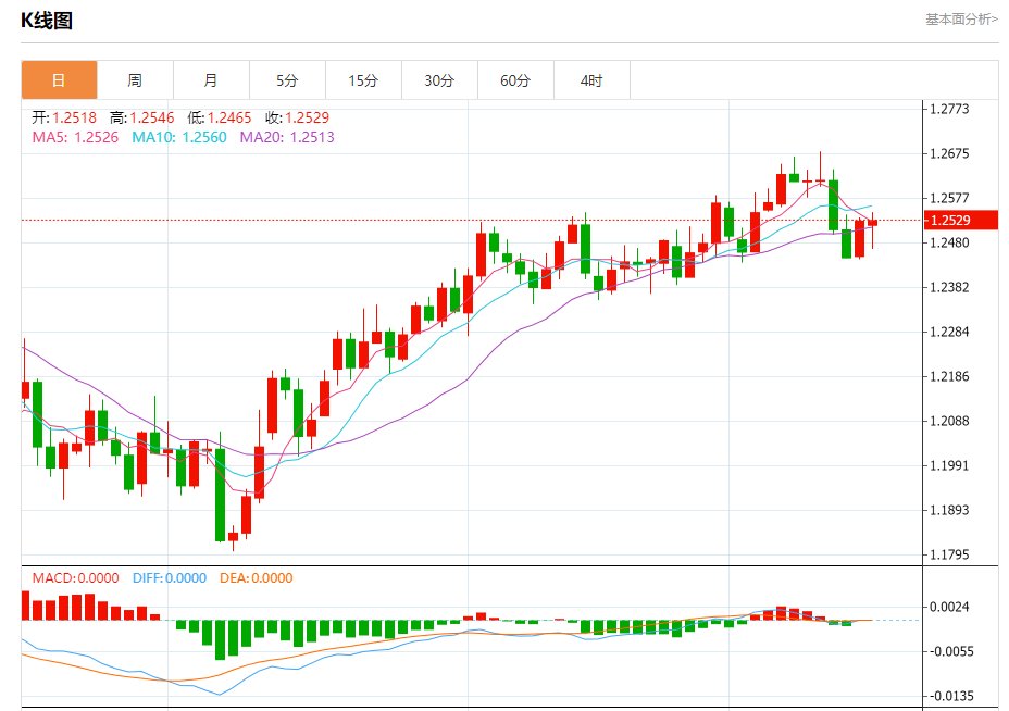 周二欧市盘中,英镑兑美元交投于1.2528,涨幅为0.00%。