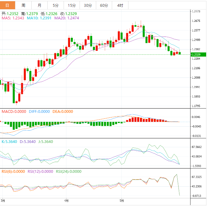 如果资产跌破5月25日的低点1.2308,美元多头将进一步走强,并将英镑拖向3月3日的低点1.2275,随后是3月14日的高点1.2204。