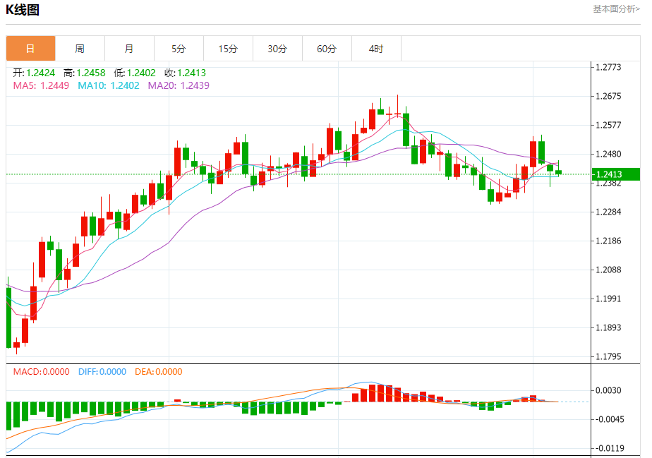 周二欧市盘中,英镑兑美元交投于1.2410,跌幅为0.12%。