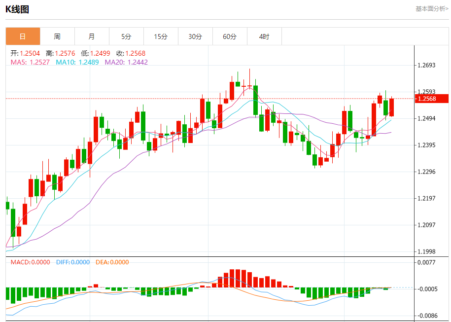 周二欧市盘中,英镑兑美元交投于1.2570,涨幅为0.49%。