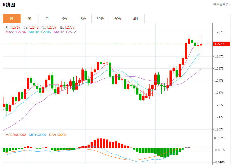 周四欧市盘中,英镑兑美元交投于1.2779,涨幅为0.07%。