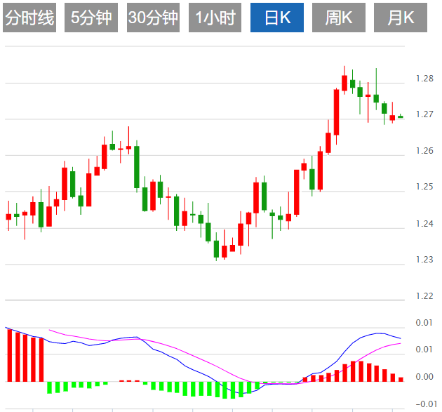 技术图上,英镑兑美元再1.2848附近形成双顶形态后大跌。英镑在1.2750附近出现波动性萎缩迹象,表明方向不明,但突破后将迎来量价齐升。