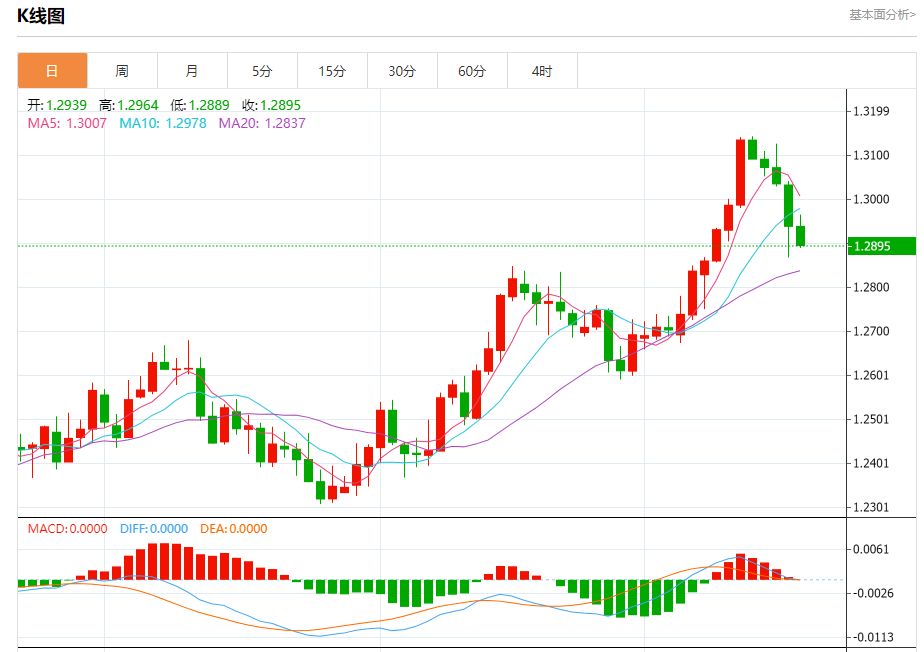 周四欧市盘中,英镑兑美元交投于1.2898,跌幅为0.32%。