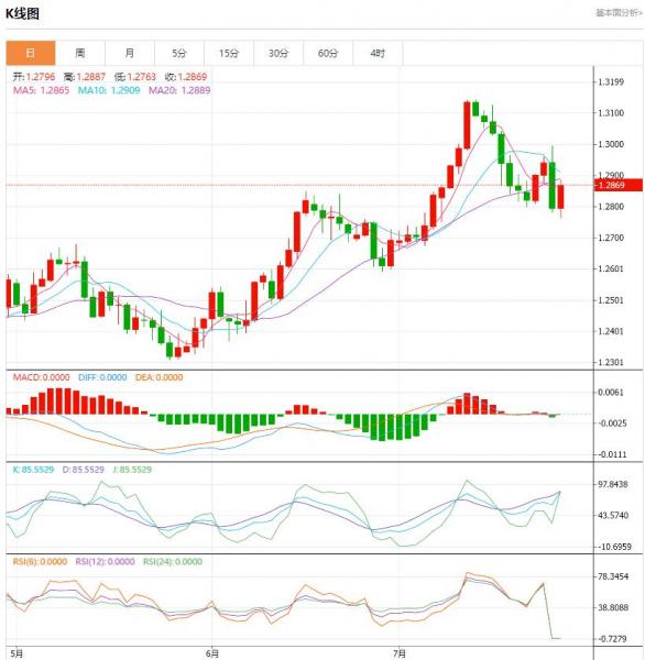 交易策略:可以在1.2860---1.2720的区间上限卖出,有效破位40个点止损,目标在区间的下限。