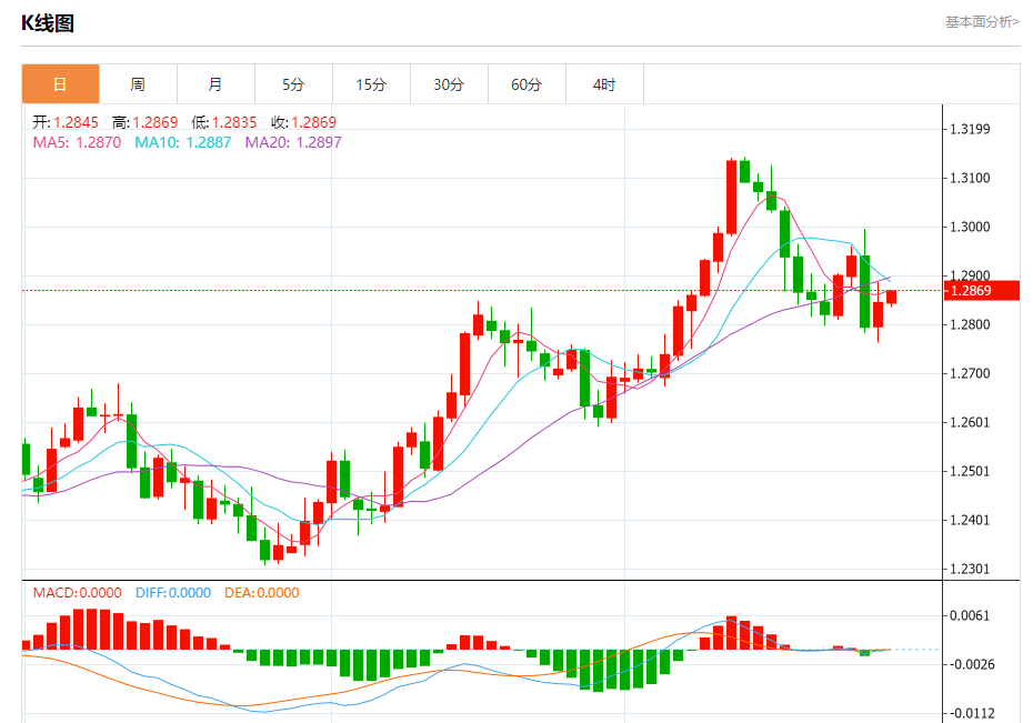 周一欧市盘中,英镑兑美元交投于1.2870,涨幅为0.18%。