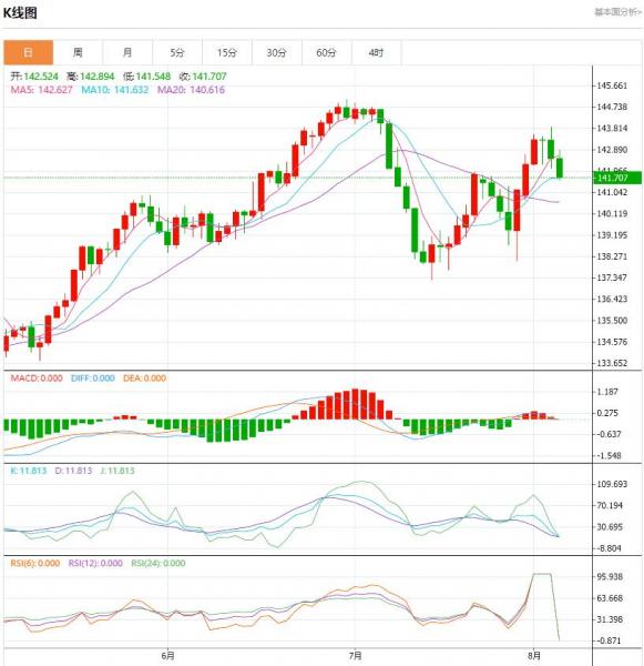 交易策略:可以在143.70---141.90的区间上限卖出,有效破位40个点止损,目标在区间的下限。