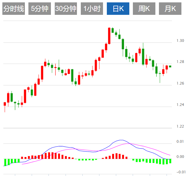 英镑/美元日线图保持中性至偏上,尽管周一的价格走势被上周五的高点1.2792所限制,略低于20天指数移动平均线1.2814。英镑/美元的另一个关键阻力区是位于1.2870/80附近的下坡阻力趋势线。相反,在跌至1.2700点之前,预计50日均线将支撑1.2743点。