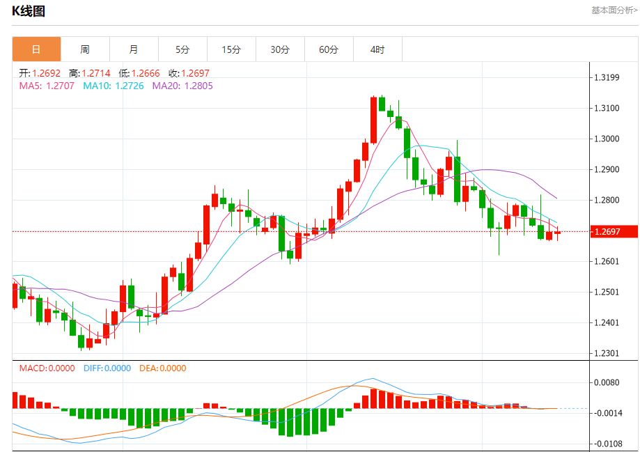 周一欧市盘中,英镑兑美元交投于1.2699,涨幅为0.02%。