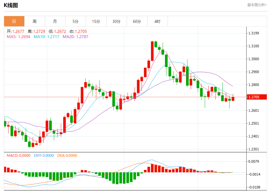 周二欧市盘中,英镑兑美元交投于1.2706,涨幅为0.21%。
