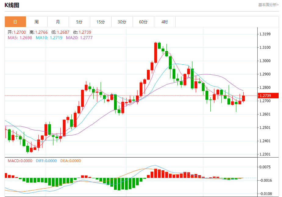 预计今天的交易区间在1.2650支撑和1.2800阻力之间。