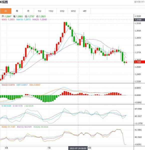 行情分析:汇价高见1.2610,低见1.2565。上一交易日,基本面上看,上周五英镑震荡下行,失守1.2600关口并刷新10周低位,现汇价交投于1.2590附近。美元指数在美联储主席鹰派言论的支撑下突破104.00关口并刷新12周高位是施压英镑下挫的主要原因。不过,时段内英国表现良好的经济数据限制了汇价的下跌空间。技术面上看,镑美H4级别在下方支撑带附近反弹,目前汇价在48日多空分界线之下运行,此外MACD量能柱和双线在零轴下方缩量,不排除汇价短期会有所反弹。