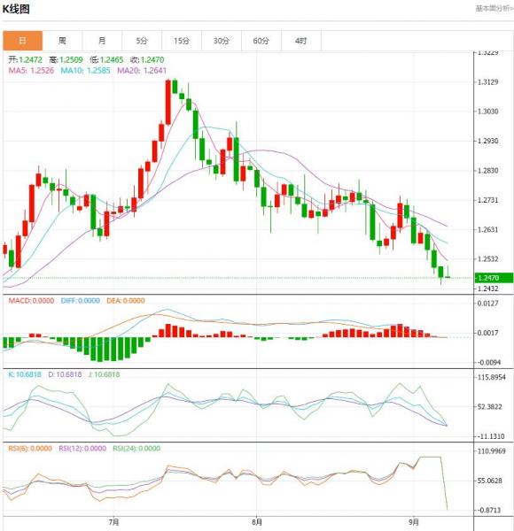 周五盘中,英镑兑美元下跌至-0.0002,跌幅-0.02%。随着原油价格上涨以及贝利发表谨慎声明后,英镑继续遭到抛售。英镑兑美元货币对跌至1.2483低点,为6月份以来的最低水平。