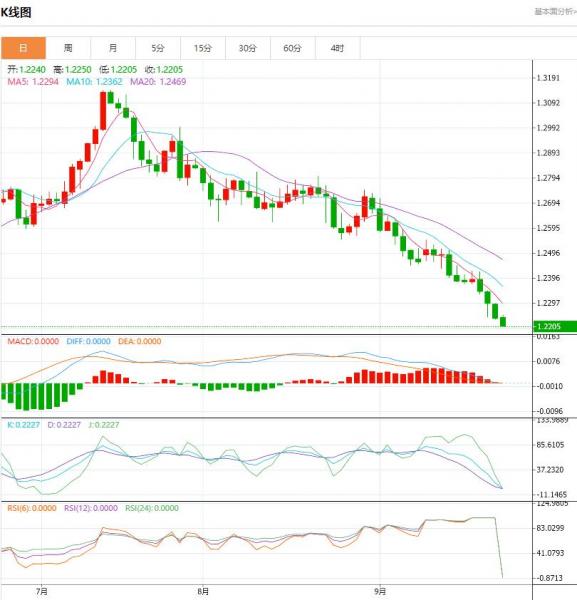 交易策略:可以在1.2285---1.2215的区间上限卖出,有效破位40个点止损,目标在区间的下限。