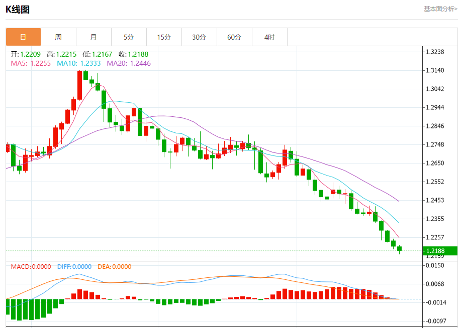 周二欧市盘中,英镑兑美元交投于1.2189,跌幅为0.19%。