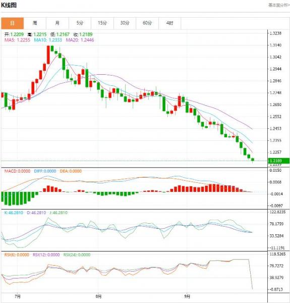 交易策略:可以在1.2280---1.2180的区间下限买入,有效破位40个点止损,目标在区间的上限。