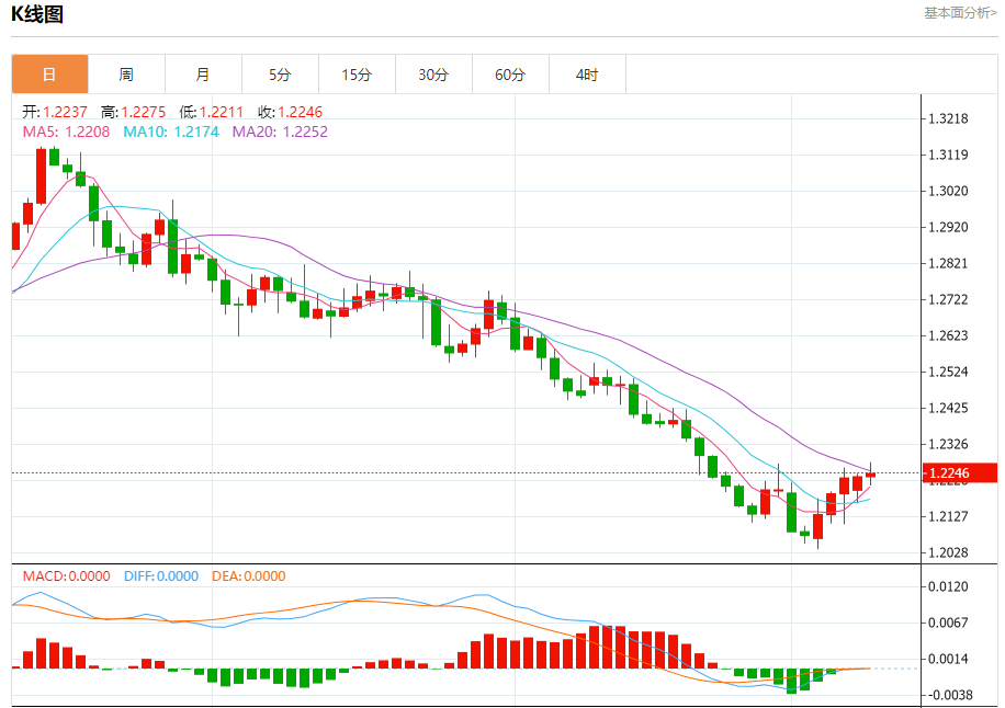 周二欧市盘中,英镑兑美元交投于1.2247,涨幅为0.06%。