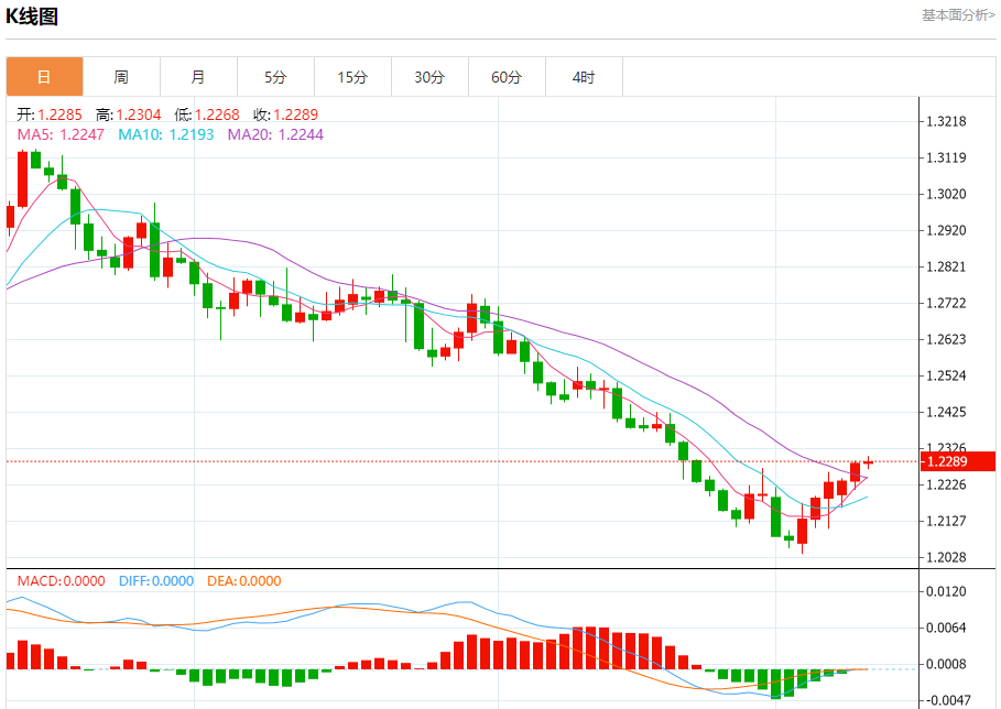 周三欧市盘中,英镑兑美元交投于1.2289,涨幅为0.02%。
