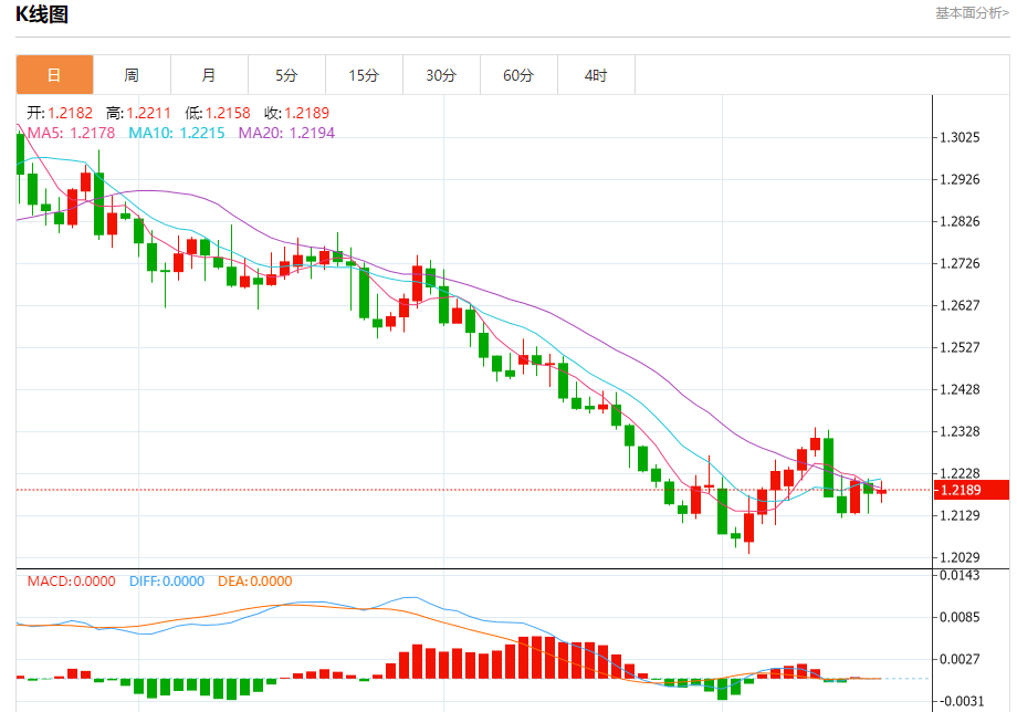 周三欧市盘中,英镑兑美元交投于1.2190,涨幅为0.06%。