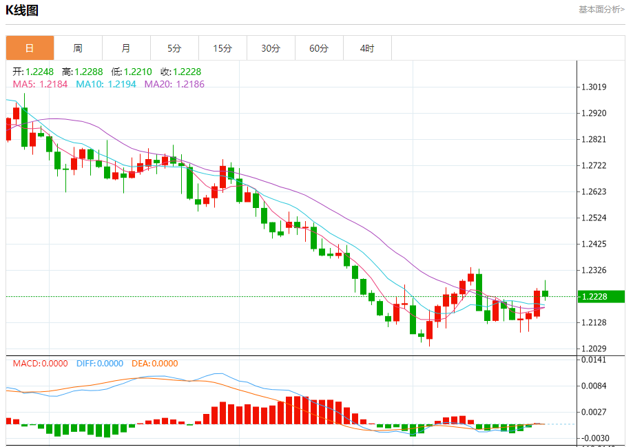 周二欧市盘中,英镑兑美元交投于1.2229,跌幅为0.17%。