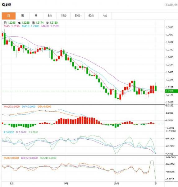 行情分析:汇价高见1.2288,低见1.2174。上一交易日,基本面上看,英镑昨日震荡上行,突破1.2200关口并刷新7个交易日高位。美元指数在美联储主席鲍威尔鸽派言论降温美联储的加息预期等利空因素的打压下失守106.00关口是支撑英镑攀升的主要原因。不过,英国央行行长Bailey暗示英国央行11月份将不会加息限制了汇价的上升空间。技术面上看,日线图上,英镑/美元在隔夜市场上已穿越过布林带通道中轨线且保持在中轨线远上方,技术指标MACD、RSI开始有上扬迹象,显示经过两周多的探低整理之后,镑美似乎产生反弹的欲望。上方还是要留意前期的强阻力水平1.2337,若能突破,反弹势能将会得到进一步增强。目前下方1.2130附近构成较强的支撑。