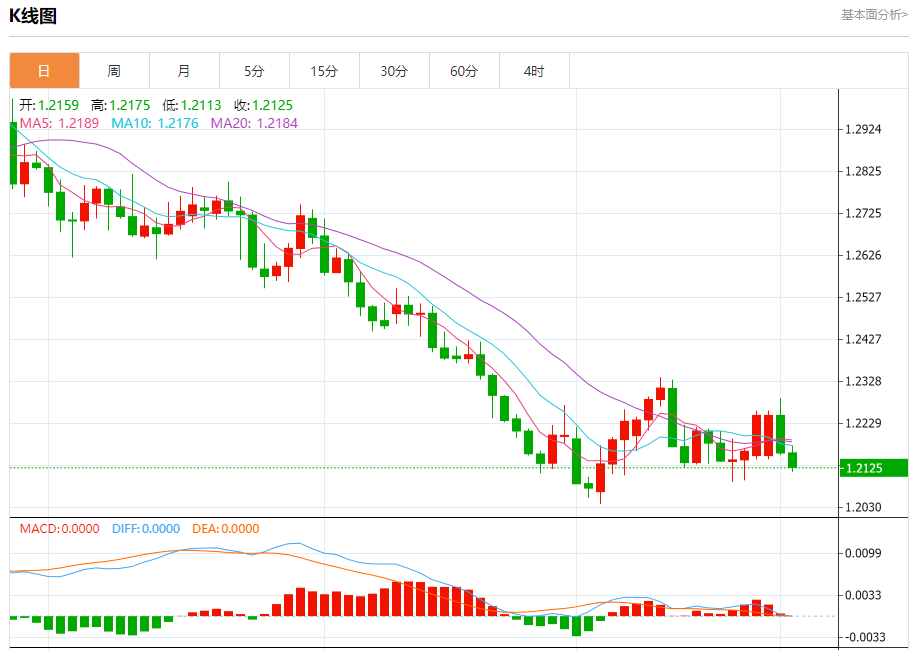 周三欧市盘中,英镑兑美元交投于1.2126,跌幅为0.28%。