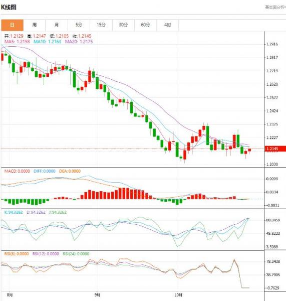 行情分析:汇价高见1.2147,低见1.2105。上一交易日,基本面上看,英镑昨日触底反弹,日线小幅收涨。除空头回补和1.2100关口附近所形成的技术面买盘是支撑英镑止跌反弹的主要原因。不过,美元指数在强劲经济数据的支撑下持续走高和对英国央行11月份不会加息的预期限制了汇价的反弹空间。技术面上看,英镑兑美元H4级别在美国GDP数据公布后下跌,但随后反弹。目前汇价运行于48日多空分界线附近,由于MACD双线和量能柱在零轴附近形成底背离,不排除英镑短期会有所反弹。
