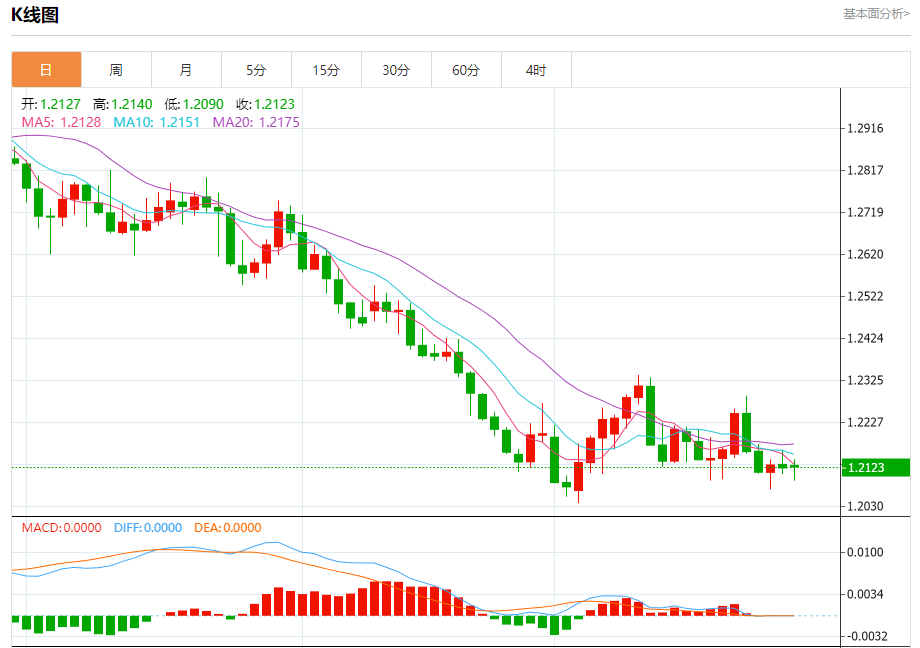 周一欧市盘中,英镑兑美元交投于1.2124,涨幅为0.02%。